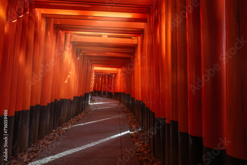 Fototapeta premium Torii gate tunnel at Fushimi Inari shrine in Kyoto, Japan.