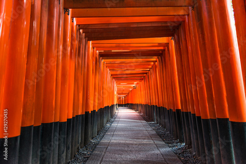 © superjoseph, Fototapeta premium Torii gates in Fushimi Inari Shrine, Japan for three consecutive years to become the most popular tourist destinations. Kyoto, Japan