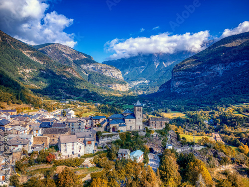 Obraz premium Torla-Ordesa and the Ordesa & Monte Perdido National Park in pyrenees Spain