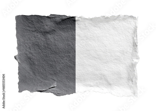 Obraz premium Torn paper, grayscale, half-and-half