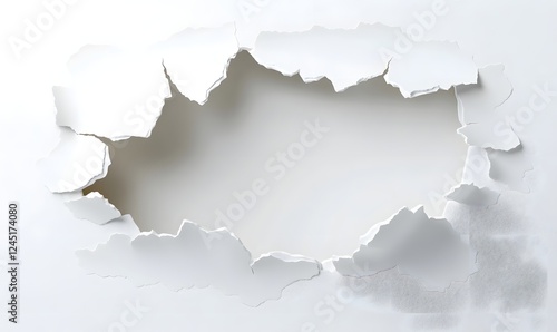 © Azril, Obraz premium Torn paper hole, white background, copy space, design element, texture (1)