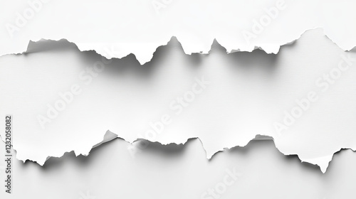 © Sahraya, Fototapeta premium Torn paper white edge txture with curl border background. Rip strip page isolated template design. Empty and broken sheet piece with shadow. Header canvas scratch concept to reveal transparent note