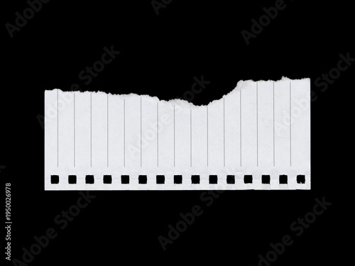 © BORT GRAPHIC, Fototapeta premium Torn perforated lined notebook paper fragment on black background