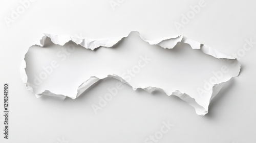 © Priya, Fototapeta premium Torn piece of white paper on a white background.