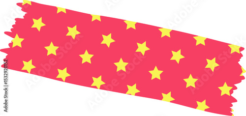 Obraz premium Torn red decorative tape in flat design is floating on transparent background, showing yellow stars