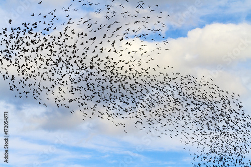 © drakuliren, Naklejka premium tornado od ptaków na niebie z chmurami
