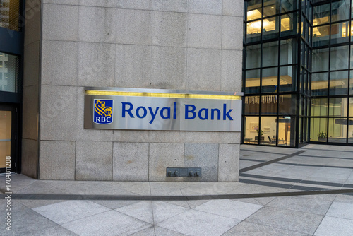 Fototapeta premium Toronto, Ontario, Canada - October 8, 2025: Royal Bank sign at the entrance...