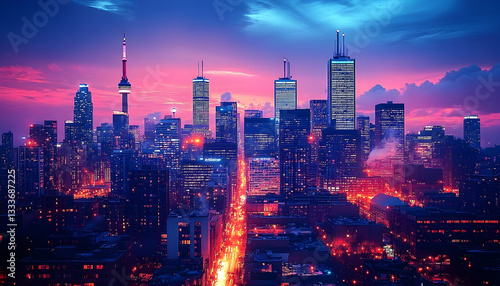 © Ida, Fototapeta premium Toronto Skyline at Dusk, City Lights