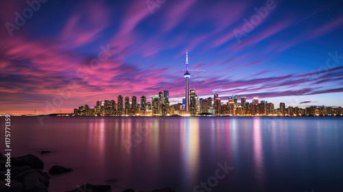 Naklejka premium Toronto Skyline at Dusk - Vibrant Colors and Reflections