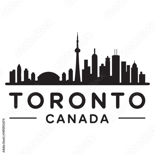 Naklejka premium Toronto skyline horizontal banner. Black Toronto, Canada. Vector template for your design. Vector black silhouette. with white background