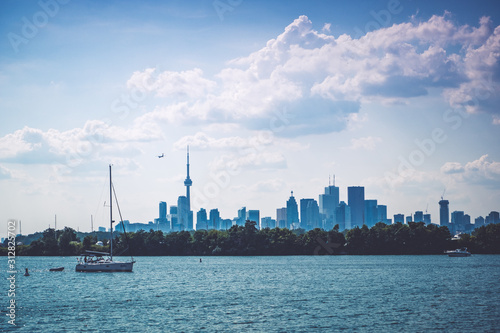 Fototapeta premium Toronto skyline with a beautiful blue sky with clouds, Toronto, Ontario, Canada