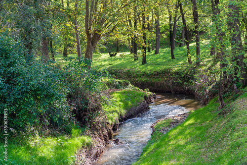 Fototapeta premium Torrent that crosses the forest that borders the Gurri river as it passes...