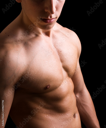 © cristovao31, Fototapeta premium torso of young muscular man, isolated on black background