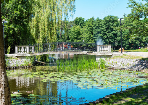 Obraz premium Tortilin pond in Zvenigorod on a sunny summer day.