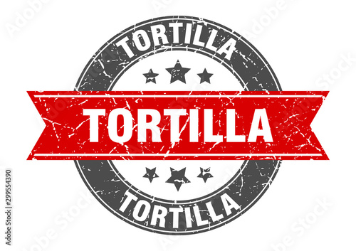 Obraz premium tortilla round stamp with red ribbon. tortilla