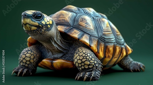 Obraz premium Tortoise: Close-up of a tortoise with a patterned shell against a soft green backdrop, capturing intricate textures and details of the creature's form.