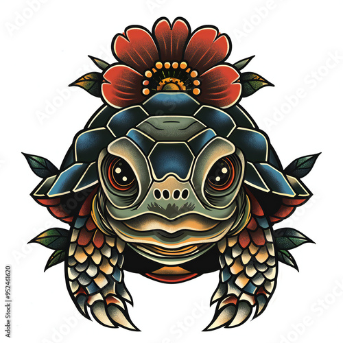 Fototapeta premium Tortoise head flower very simple traditional tattoo flash styles illustration