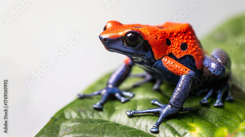 © Shakeeb, Obraz premium Tortoise pet animal isolated on white background wwRed poison frog exotic poisonous animal. Red poison frog on leaf in south american amazon rain forest. Endangered amphibian of the tropical jungle. D