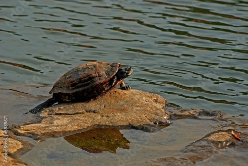 Fototapeta premium tortoise resting on the rock in the lakes