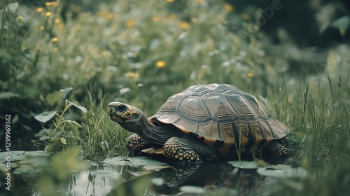 Obraz premium Tortoise rests peacefully with an octopus shadow, embodying solitude and calm...