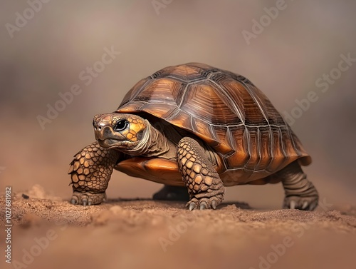 Naklejka premium Tortoise Slowly Traversing Arid Landscape