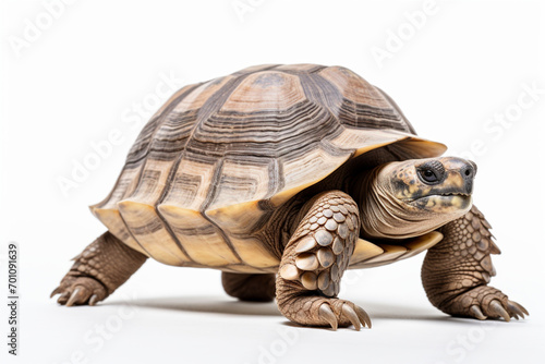 © Laser Eagle, Obraz premium Tortoise standing on a white background. Animal right-side portrait.