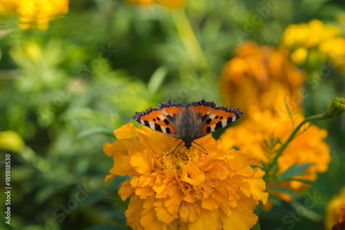 Obraz premium Tortoiseshell Butterfly on flower in the garden