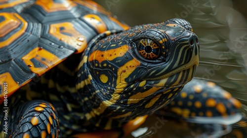 Obraz premium Tortoiseshell turtle exoskeleton, showcasing intricate patterns and natural...