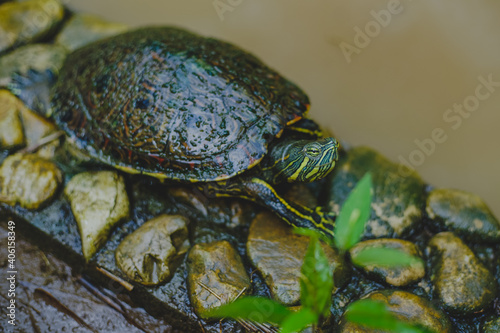 © Alejandro, Obraz premium Tortuga en la orilla del agua