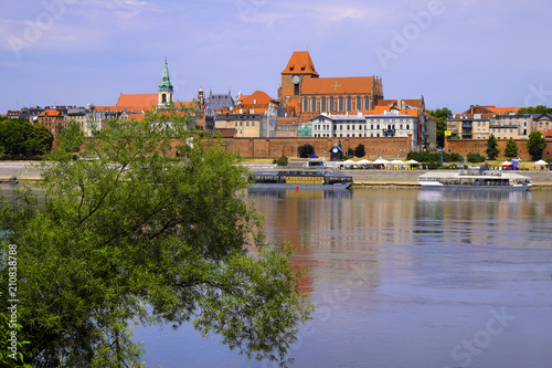 Naklejka premium Torun, Poland - Panoramic view of historical district of Torun old town by the Vistula river
