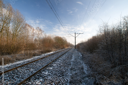 Fototapeta premium tory kolejowe, zimowa sceneria