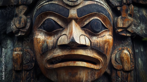 Naklejka premium Totem indian wooden mask background composition