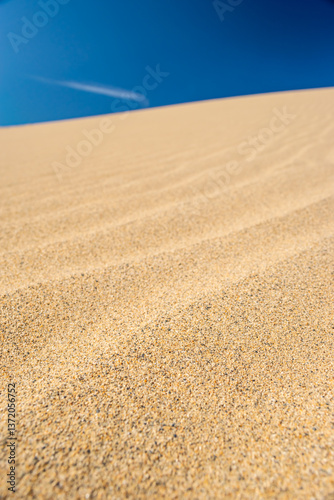 © pheeby, Naklejka premium Tottori Sand Dunes – Beautiful Sand Ripples and Blue Sky, Tottori, Japan