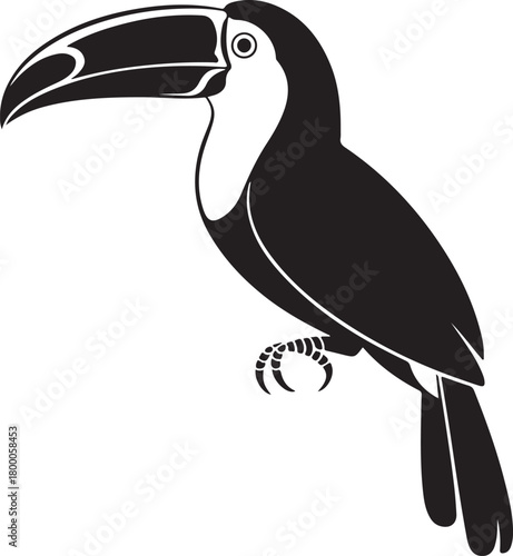 Obraz premium Toucan bird. Black silhouette of an exotic toucan bird isolated on a white background. Vector illustration