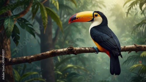 © R-CHUN, Naklejka premium Toucan bird illustration, digital art.