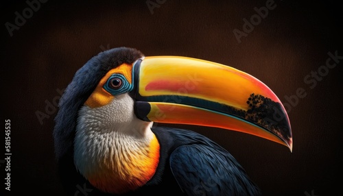 © AdriFerrer, Naklejka premium Toucan close-up on black background. Generative AI