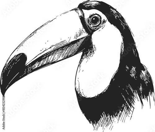 © labirint, Naklejka premium Toucan head sketch, hand drawn vector, detailed beak and feathers. Vector illustration