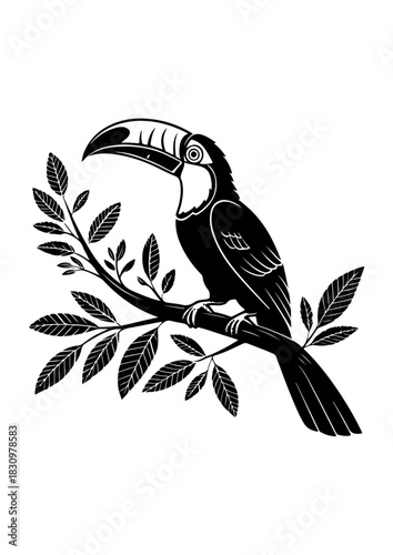 © Abdul Rahim, Fototapeta premium Toucan on a Branch Black and White Illustration