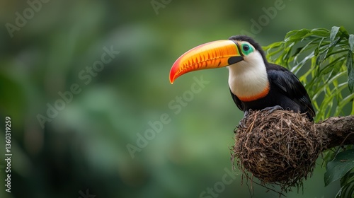Fototapeta premium Toucan perched in nest, vibrant colors