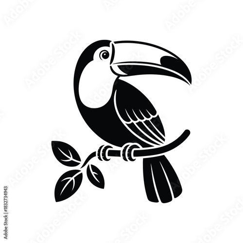 © Mst Insanara Begum, Fototapeta premium Toucan perched on a branch, silhouette vector design on a white background