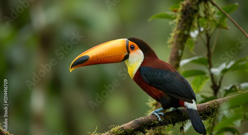 Naklejka premium Toucan Perched on a Tree Branch in a Tropical Rainforest.