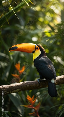 © RightPurpose, Naklejka premium Toucan Perched on Branch in Lush Rainforest Environment Natural Light