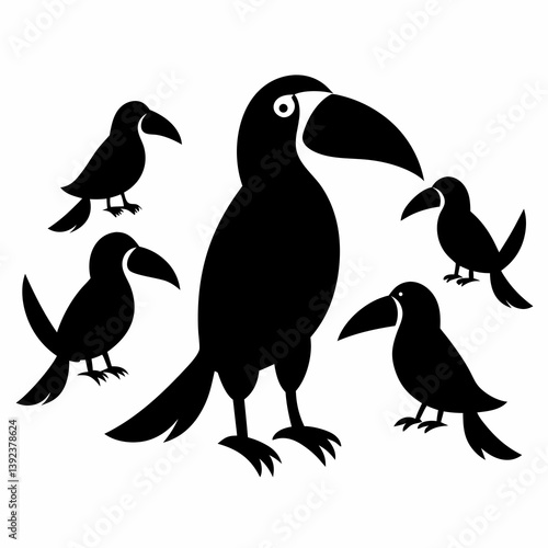 © Nayeem, Obraz premium Toucan Silhouette Bundle Set in Vector Style Clip Art with White Background