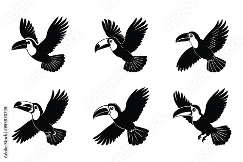 © Mgain, Fototapeta premium Toucan silhouette bundle set in vector style clip art with white background