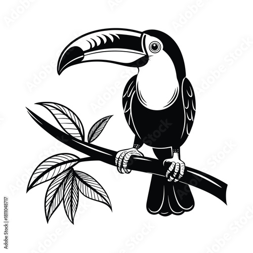 © mr.shawn007, Fototapeta premium Toucan Vector Illustration Exotic Tropical Bird Wildlife South America Jungle Rainforest Icon Design Nature Artwork Perched Branch