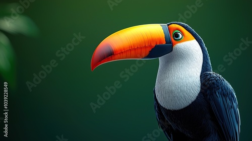 © meta, Naklejka premium Toucan with a Large Beak Against a Green Background