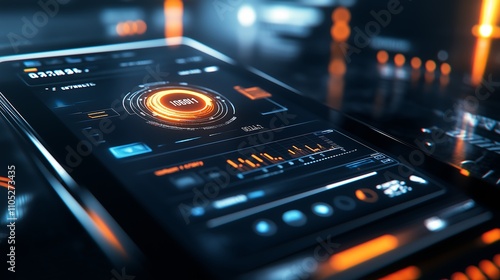 © Meawlee, Obraz premium Touchscreen device showing website optimization tools, speed analysis in progress, web performance focus.