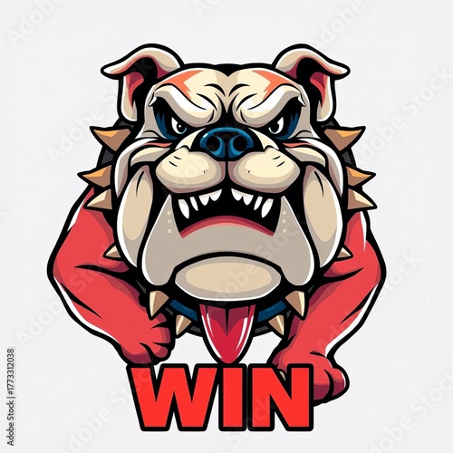 © Krit, Obraz premium Tough bulldog mascot, aggressive, intimidating, formidable, ready to win, dog, powerful