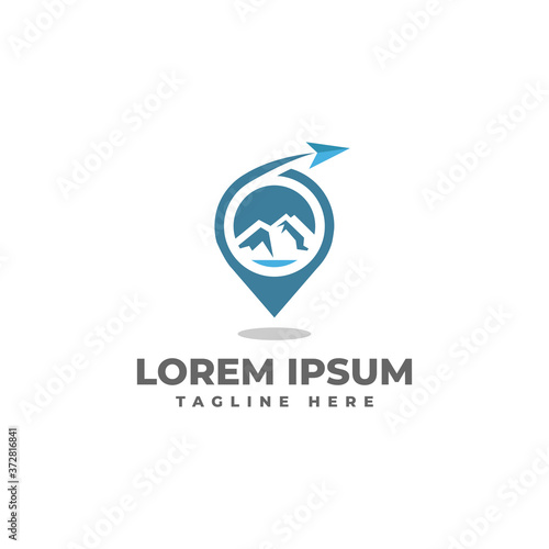 Obraz premium Tour Mountain and Location Tag for Travel Logo Design