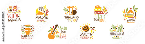 Naklejka premium Tourism and Travel Destination Logo and Label Design Vector Set